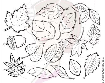 Fall Leaves Autumn Clipart Hand Drawn Leaf Digital Stamp Etsy